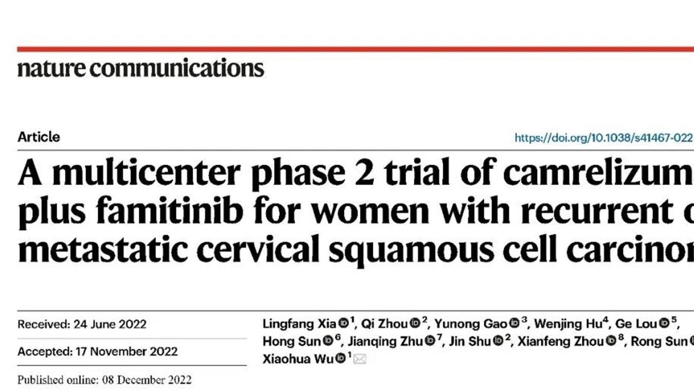 Z6尊龙创新药卡瑞利珠单抗联合法米替尼用于复发或转移性宫颈癌研究结果荣登JCO